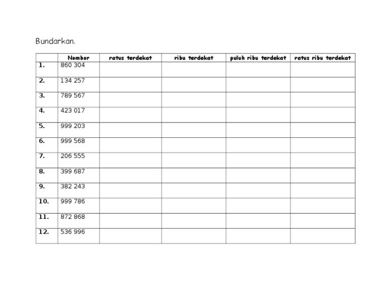 Latihan Pengukuhan Matematik Tahun 2 Bundarkan Puluh Terdekat Dan Ratus Terdekat Pdf